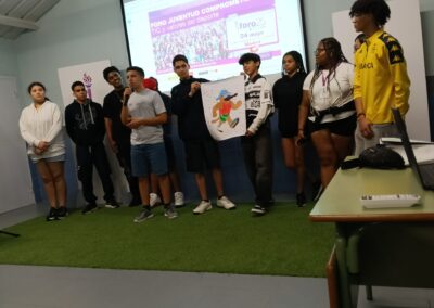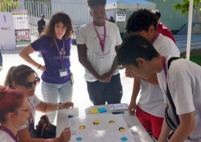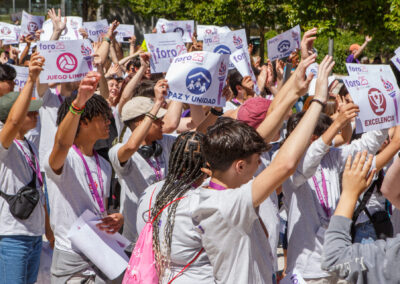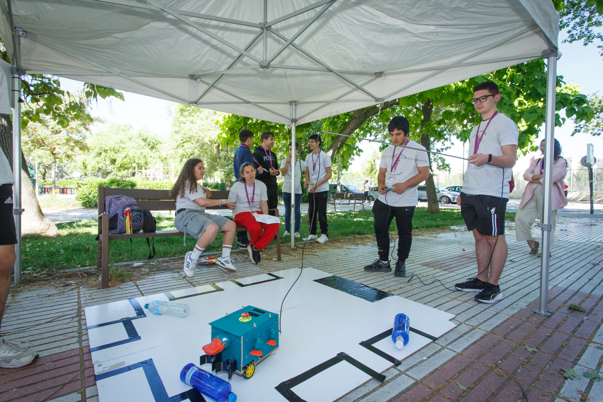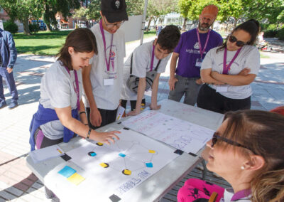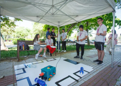 Las actividades abiertas a la ciudadanía han tenido lugar el sábado por la mañana en el Centro Cultural José Luis Sampedro. En los jardines del recinto, disfrutamos de juegos del mundo en cinco carpas —una por continente— para celebrar la diversidad cultural y el trabajo en equipo. Además, añadimos otra carpa para mostrar los últimos proyectos tecnológicos realizados por los grupos. Todo ello en un ambiente festivo y lleno de energía, animado por los ritmos vibrantes de la charanga Los Pichines.