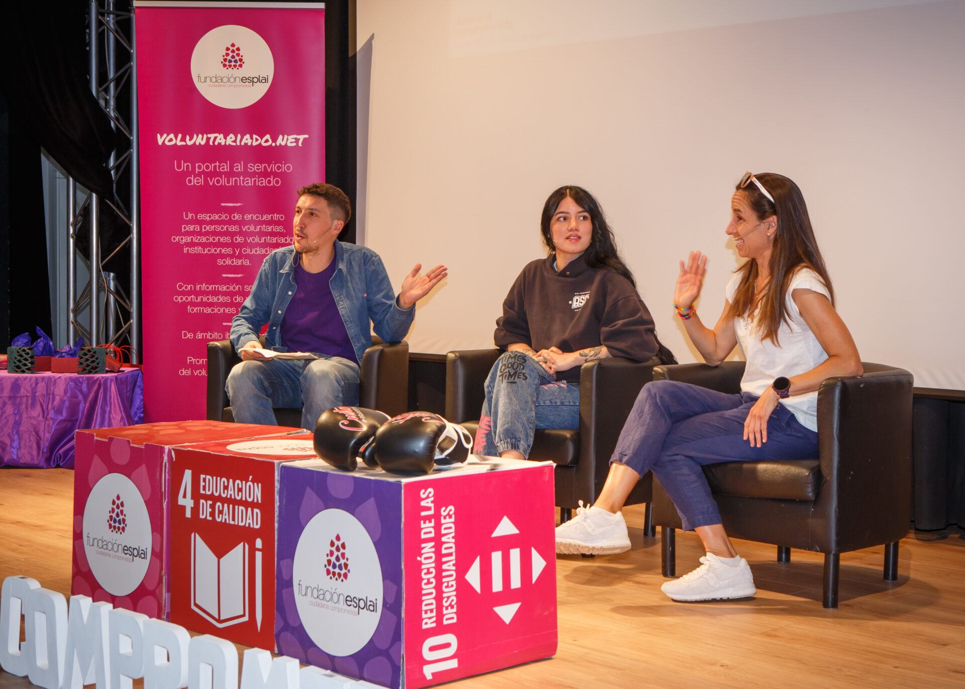 A continuación, participamos en la mesa redonda “Valores y deporte”, junto a Tamara Sanfabio, atleta y campeona de España de maratón en 2011; y Sofía Zapata Ramírez, boxeadora amateur de la Asociación Social Combativa. Las personas ponentes compartieron sus trayectorias y reflexionaron sobre el papel del deporte como herramienta de transformación social.
