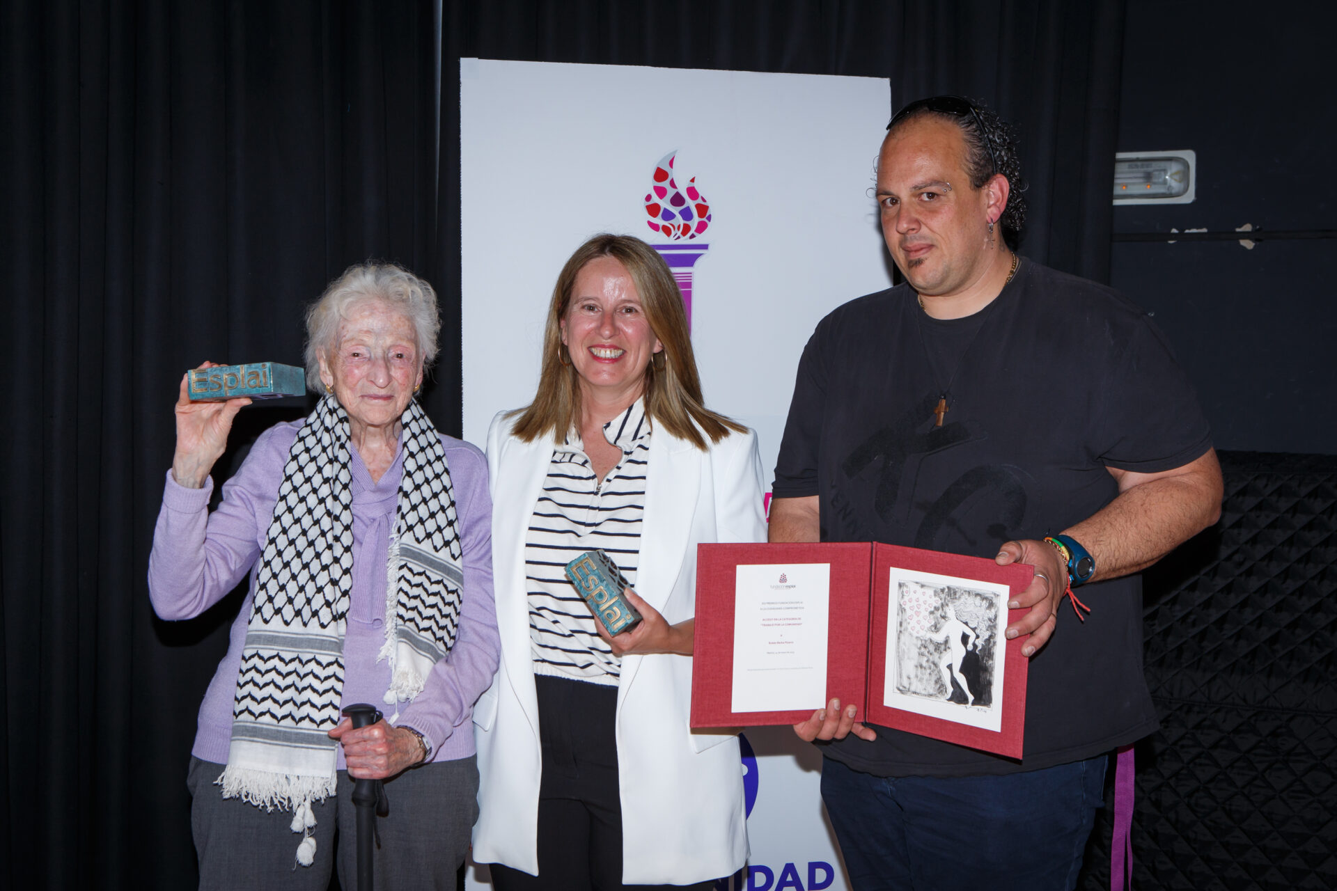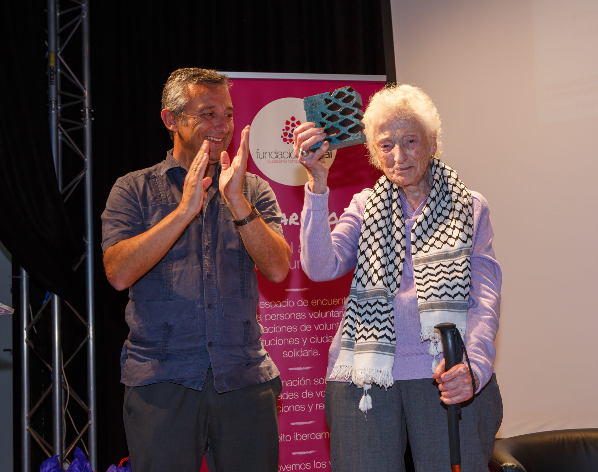 - Gloria Cavanna Trugeda, voluntaria de más de noventa años de la Asociación de Vecinos Valle Inclán, recibió el premio en la categoría “Trabajo por la Comunidad” por su incansable compromiso vecinal y social en Madrid.