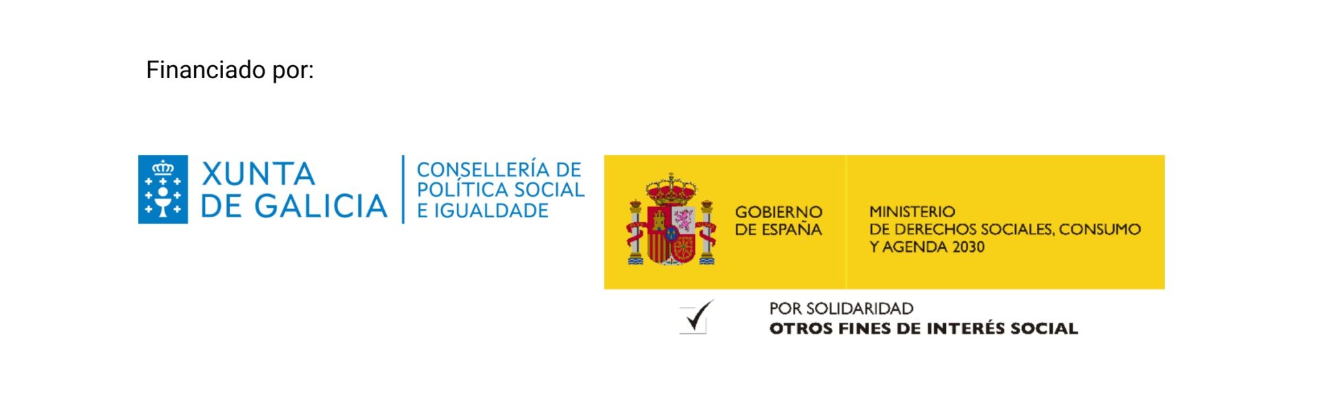 Todo esto se puede realizar gracias a la financiación del Ministerio de Derechos Sociales, Consumo y Agenda 2030 y a la Xunta de Galicia a través de la Consellería de Política Social e Igualdade, con cargo al 0,7% del IRPF.