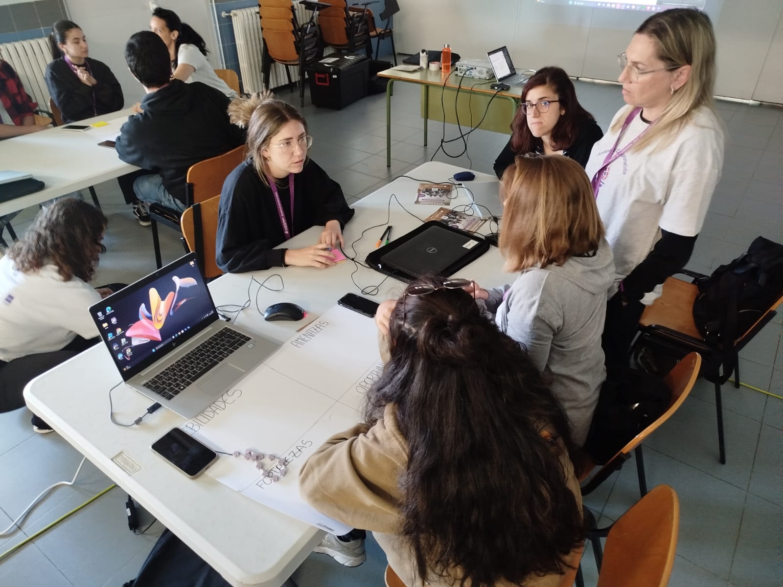 Además, llevamos a cabo el taller “Uso crítico, seguro y creativo de la IA para profesionales que trabajan con jóvenes” que reunió a 29 educadores y educadoras de 15 organizaciones distintas. Durante esta jornada, estudiamos cómo aplicar de forma crítica, segura y creativa la IA generativa en el trabajo con jóvenes, mediante un debate y actividades prácticas de aplicaciones.