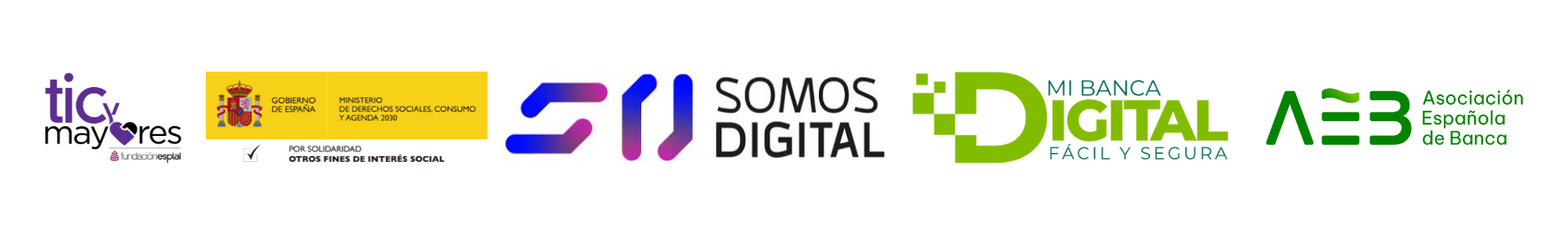 Este webinar se desarrolla con la colaboración de Somos Digital a través del proyecto con la AEB de «Mi banca Digital» y la subvención a cargo de los fondos procedentes del 0,7% del IRPF, gestionados por el gobierno a través del Ministerio de Derechos Sociales y Agenda 2030