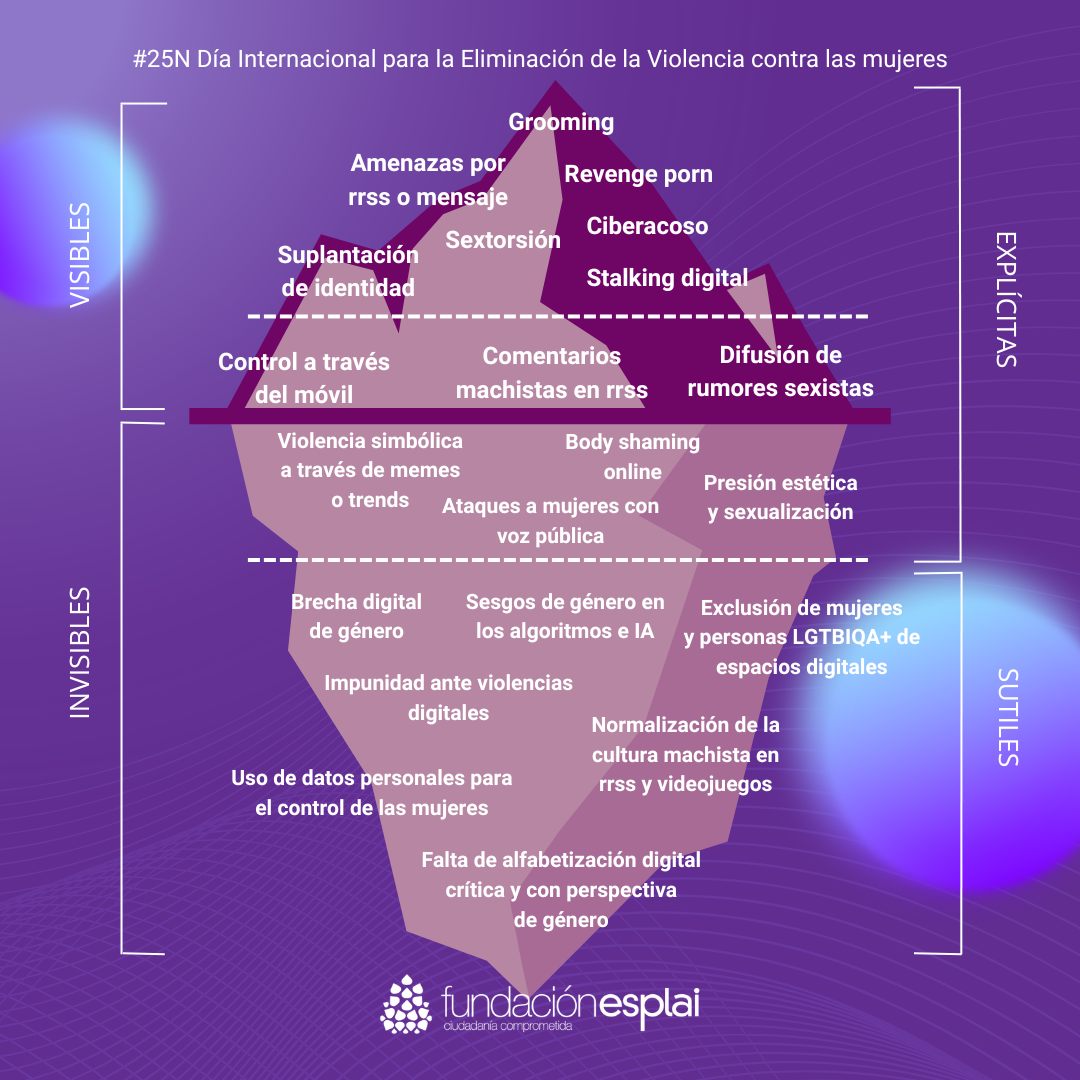 Este año, desde Fundación Esplai nos sumamos al Día Internacional para la Eliminación de la Violencia contra las Mujeres, reafirmando nuestro compromiso con la igualdad, los derechos digitales y la protección de mujeres y niñas frente a las violencias que también se ejercen en el entorno digital. En un mundo cada vez más conectado, las violencias digitales —acoso, control, amenazas, difusión no consentida de imágenes o discursos de odio— se han convertido en una extensión de las violencias machistas tradicionales, afectando de forma especialmente grave a adolescentes y mujeres jóvenes.